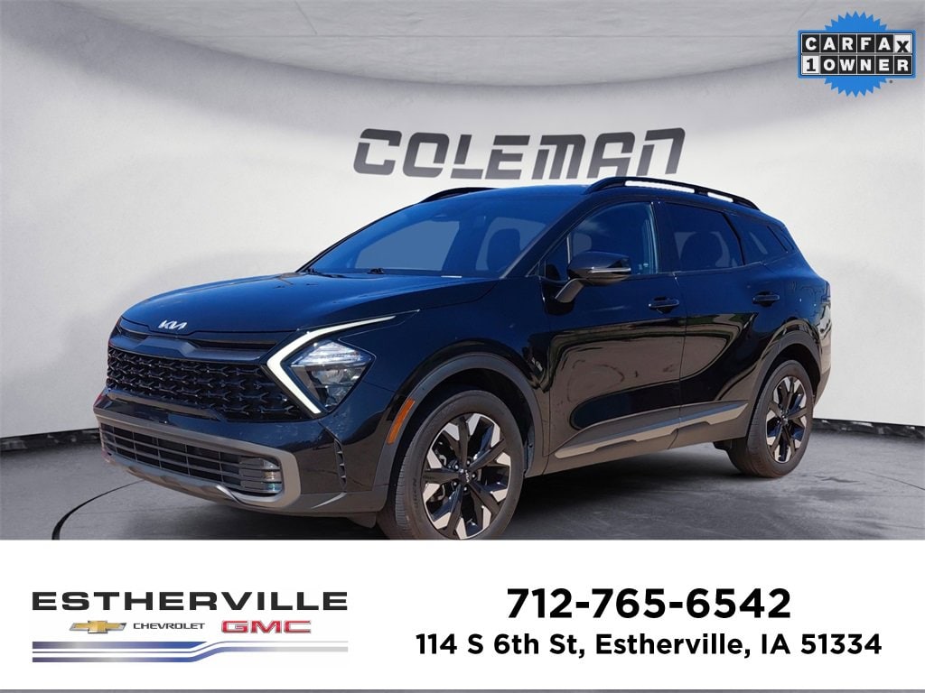 CARFAX One-Owner. Clean CARFAX.Ebony Black 2023 Kia Sportage X-Line AWD 8-Speed Automatic I4 AWD.23/28 City/Highway MPGServing Pre-Owned Buyers Within a 300-Mile Radius of Estherville * Estherville, IA * Spencer, IA * Spirit Lake, IA * Sioux Falls, SD * Des Moines, IA * Minneapolis, MN * Saint Paul, MN * Omaha, NE * Fargo, ND * Rochester, MN * Cedar Rapids, IA * Sioux City, IA * Ames, IA * Waterloo, IA * Mason City, IA * Mankato, MN * Albert Lea, MN * Worthington, MN * Marshall, MN * Brookings, SD * Yankton, SD * Vermillion, SD * Norfolk, NE * Council Bluffs, IA * Iowa City, IA * Fairmont, MN * Jackson, MN * Algona, IA * Fort Dodge, IA * Owatonna, MN * Willmar, MN * Hutchinson, MN ...and many more towns and communities across Northwest Iowa, Southern Minnesota, Southeast South Dakota, Eastern Nebraska, and Central Iowa. Whether youâre searching for a rugged truck, versatile SUV, or any quality pre-owned vehicle, Estherville Chevrolet GMC is your trusted destination serving drivers from major regional hubs to surrounding rural communities.Estherville Chevrolet GMC, the difference is we offer a transparent buying experience. ***All prices listed are PLUS $180 doc fee, taxes, title fees, and tag fees. Customer must trade-in a vehicle that meets Trade Assistance qualifications to receive $1,000 Trade Assist credit. Financing must be provided by a third-party lender using this dealership's assistance and meet Finance Assistance qualifications for Customer to receive $1,000 Financing Assist credit. The online sale price includes trade in and financing assist credits. All vehicle pricing excludes $1998 Xylon Coating and $399 Data Dots. Pre-owned vehicle pricing excludes any reconditioning expenses or transport to the Dealership which amount will vary depending on the vehicle. **Trade Assistance Qualifications: qualifying vin# must be a 2011 or newer vehicle with under 150,000 miles. Qualifying vin# must also have a clean Carfax vehicle history report that does not include history of accident, damage, lemon law, buy back, total loss, or stolen recovery. **Finance Assistance Qualifications: must finance 80% of online Sale Price through a conventional finance source of the dealerships choosing with dealership assistance. All prices, specifications, and availability subject to change without notice. Contact dealer for most current information. All advertised pricing is on in-stock units only and includes all applicable dealer discounts, manufacturer discounts, and incentives. Certain offers and incentives presume financing through the Manufacturer Captive Lender, subject to approved credit. Should you purchase the vehicle through the use of other funds or through other lending sources, certain offers and rebate incentives may be excluded. Due to supply chain challenges and limited inventory, vehicles may be subject to an additional market adjustment depending on inventory production, availability and market conditions. Please see dealer for details.